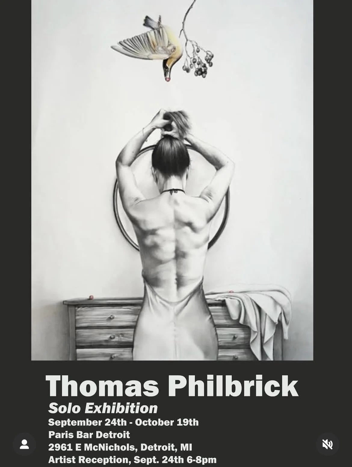 Seventeen of the artist’s original drawings will be on view from September 24, 2025 through October 19, 2025 at Paris Art Bar in Detroit, Michigan. The exhibition will begin with an opening reception on September 24, 2025. The artist will be in attendance.